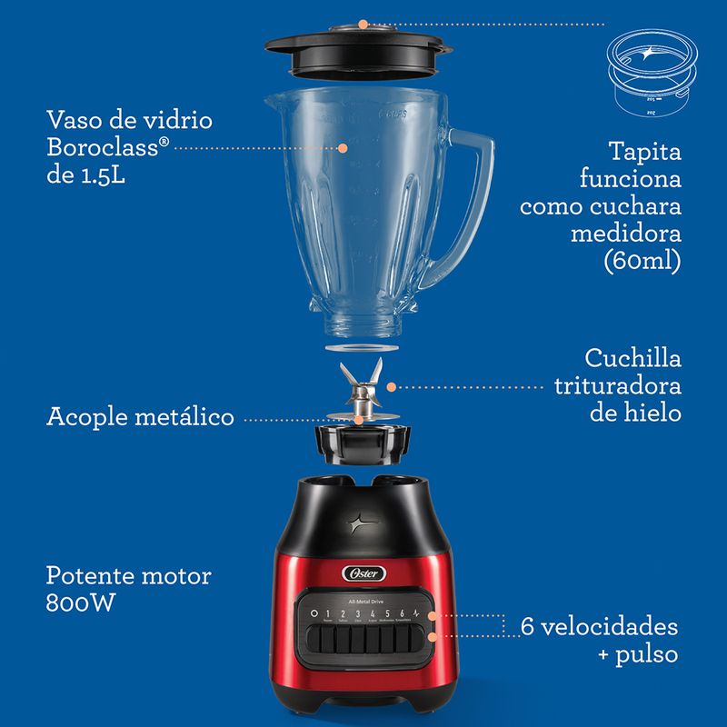 Licuadora Oster® con vaso de vidrio y 6 velocidades más pulso BLSTPEG-CPB