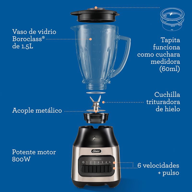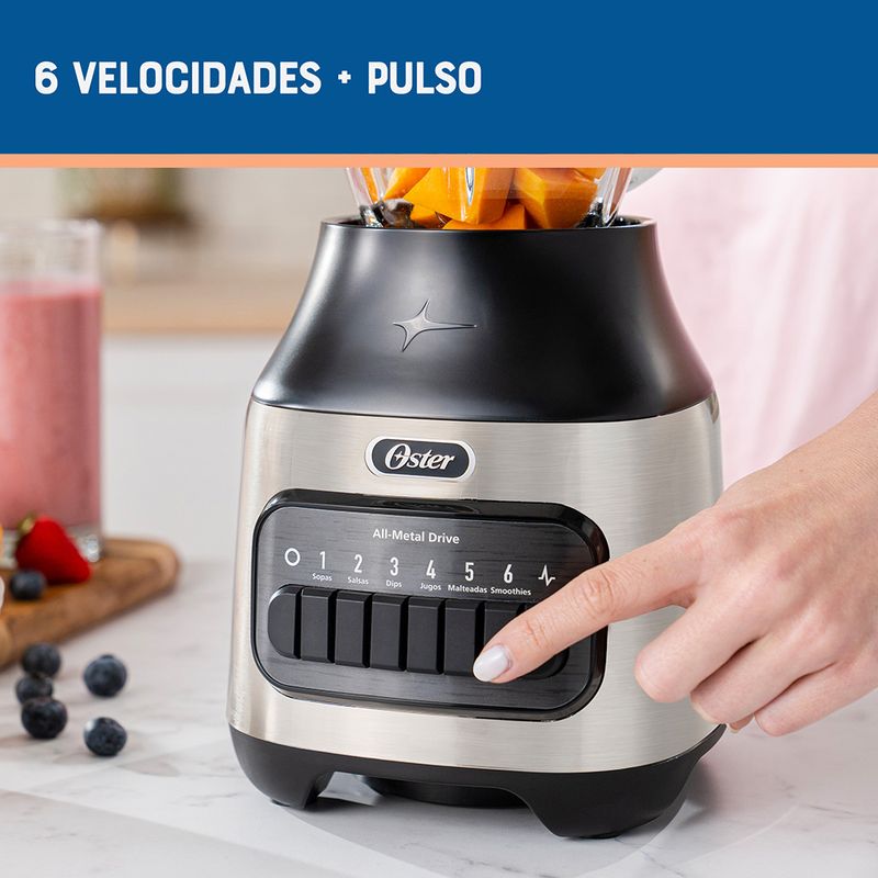 Licuadora Oster® con vaso de vidrio y 6 velocidades más pulso BLSTPEG-NPB