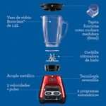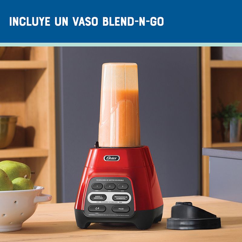 Licuadora Oster® roja con programas automáticos, tecnología reversible y vaso Blend-N-Go BLSTPYG1310RBG 220V
