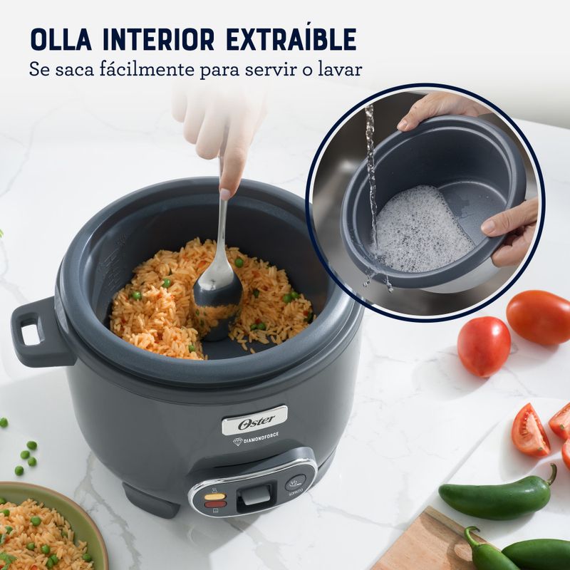 Oster Arrocera, 3 en 1, 10 Tazas de Capacidad, con Función de Sofrito, Vaporera, Recubrimiento Antiadherente Oster DiamondForce, CKSTRC10DFSKE