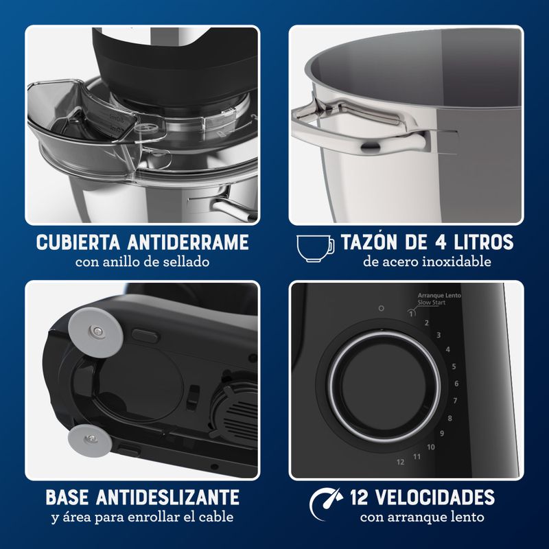 Oster® Batidora Planetaria, 12 velocidades, Tazón de Acero Inoxidable, Capacidad de 4 lt, Incluye 4 Accesorios, 850 W, Negro, FPSTSMPL2B