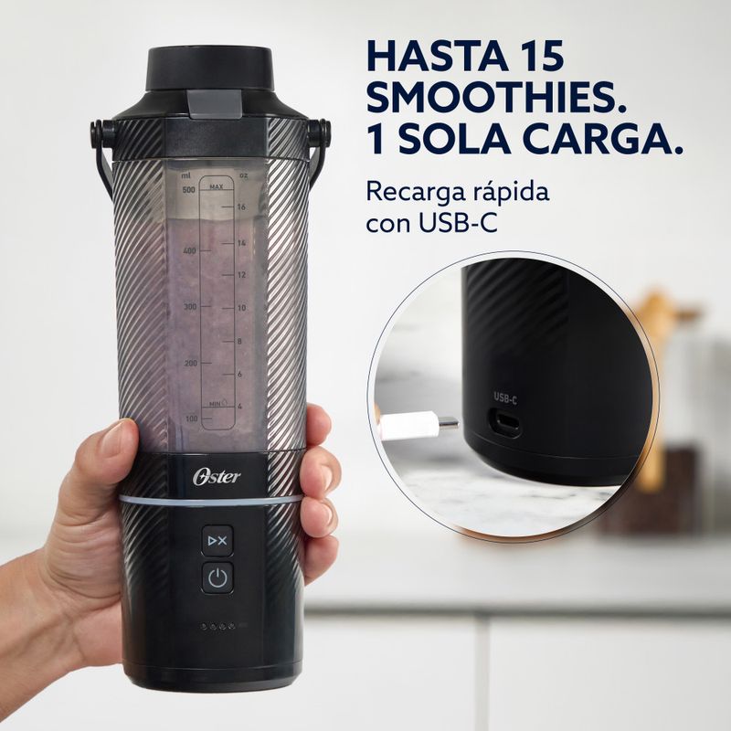 Oster Licuadora Portátil, GoMAX, 590 ml de Capacidad, para Smoothies, Negro, BLSTGFP-B20-000